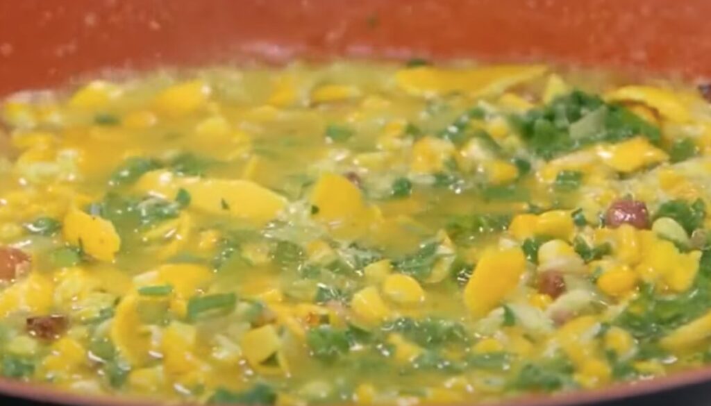 Fruto espinhoso, o pequi protagoniza esse prato que é relativamente simples. Ele é preparado com arroz, um refogado de cebola e alho e, é claro, o pequi, que traz sabor semelhante ao de queijo.