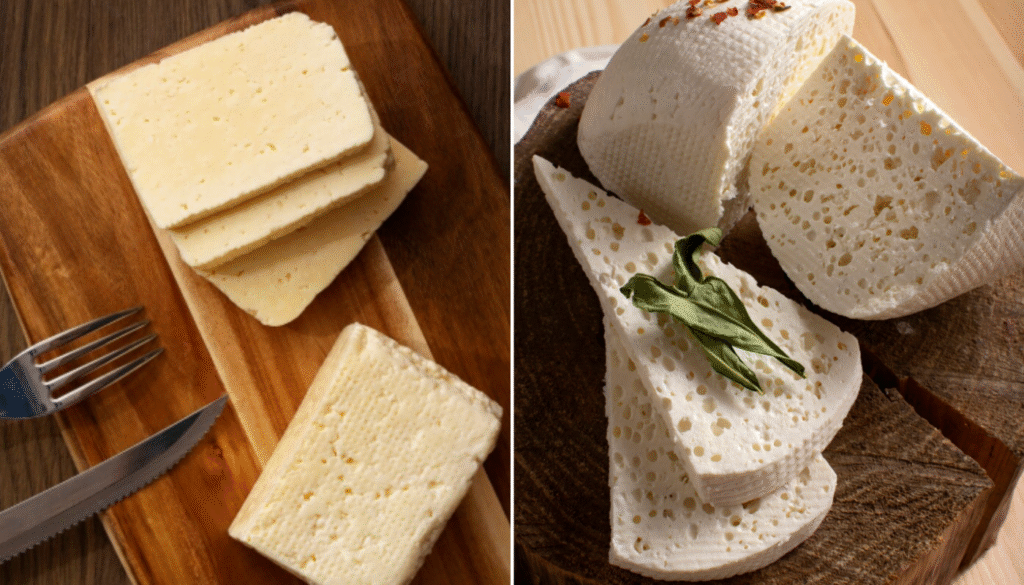 Isso serve, por exemplo, para queijo minas frescal, queijo coalho e qualquer outro queijo não maturado. No entanto, é importante saber identificar os furos que marcam o perigo. Caso sejam apenas olhaduras mecânicas leves, irregulares e espaçadas, isso apenas representa o ar que ficou preso na massa durante a prensagem.